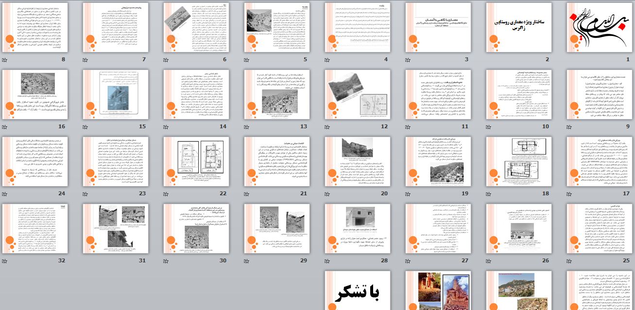 در این بخش پاورپوینتی با عنوان ساختار ویژه معماری روستایی زاگرس در 36 اسلاید برای دانلود قرار داده شده است. در ذیل پیشنمایشی از آن آورده شده است.